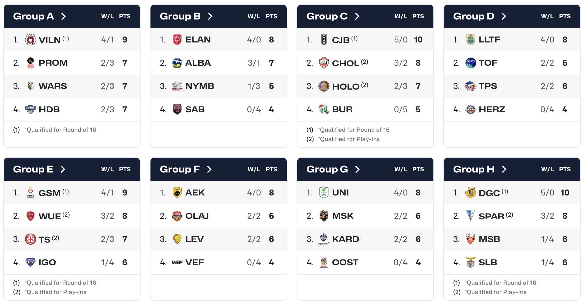 Ne pārāk veiksmīgi sezonu iesākuši Latvijas čempioni basketbolā “VEF Rīga”, kuri FIBA Čempionu līgā pēc četriem aizvadītiem mačiem ir aizvien palikuši bez uzvarām. Teorijā Rīgas klubam tāpat ir vēl iespējas kvalificēties “play-out” kārtai un ieņemt trešo vietu grupā. Tas gan būs grūti izdarāms uzdevums, ņemot vērā faktu, ka 2. un 3. vietā esošajām Slovākijas “Levice” un Ungārijas “Szolnoki Olaj” ir izcīnītas par divām uzvarām, tostarp katrai pret Vefiņu un, slovāku klubam to paveicot diezgan iespaidīgi Rīgā ar +19.